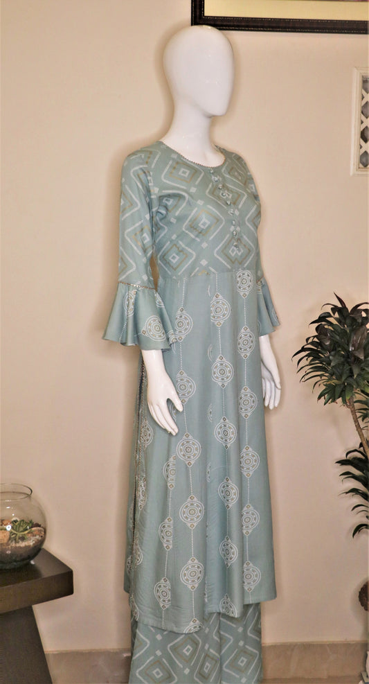 Sage Green Foil Printed Kurta & Palazzo