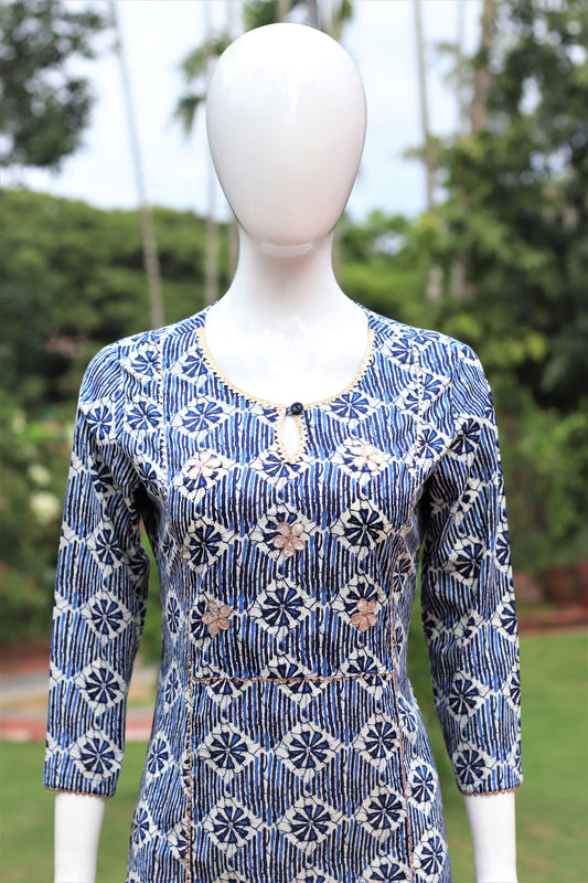 Blue Floral Block Printed Kurta