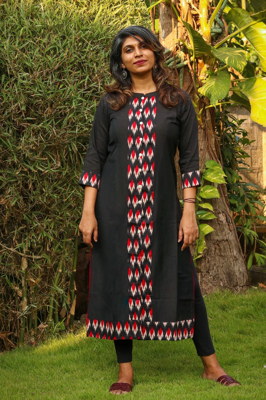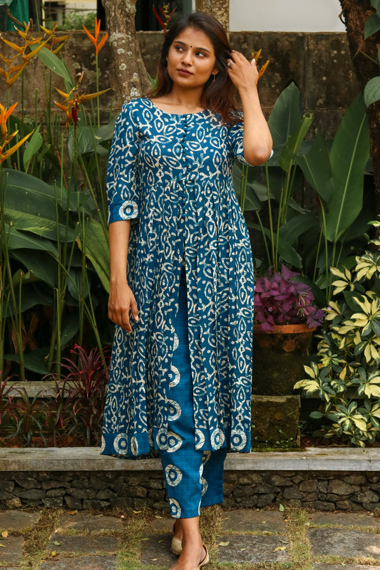 Blue & Red Floral Muslin Kurta with Striped Palazzo Pants