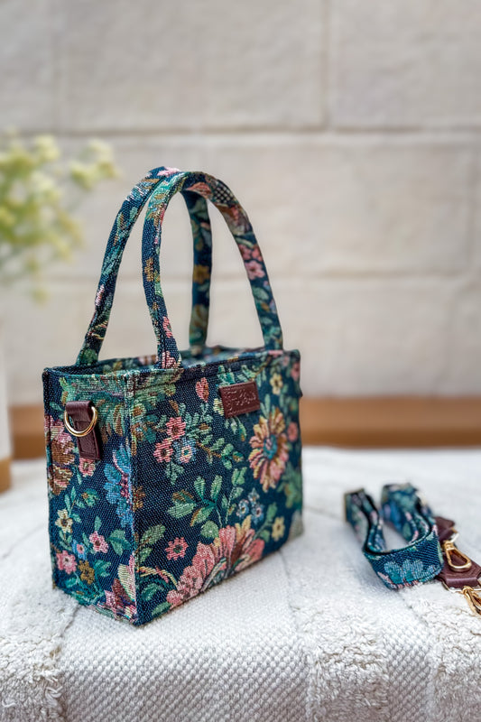 Denim Floral Box Sling Bag
