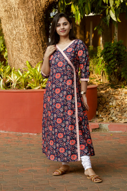 Dark Violet Block Printed Angrakha