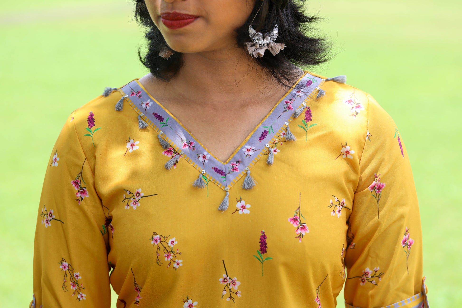 Straight Cut Kurta with Tassel work on the neck line and flared palazzo pants. Both the Kurta & Palazzo come with Crepe lining ensuring a lustrous fall for the attire!